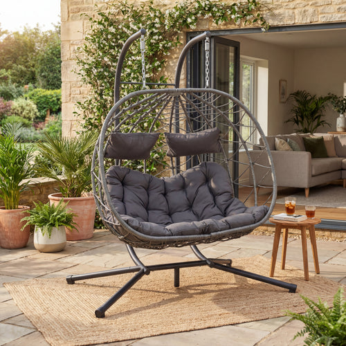 2-Person Foldable Hanging Egg Chair, Wicker, 60"W – Black