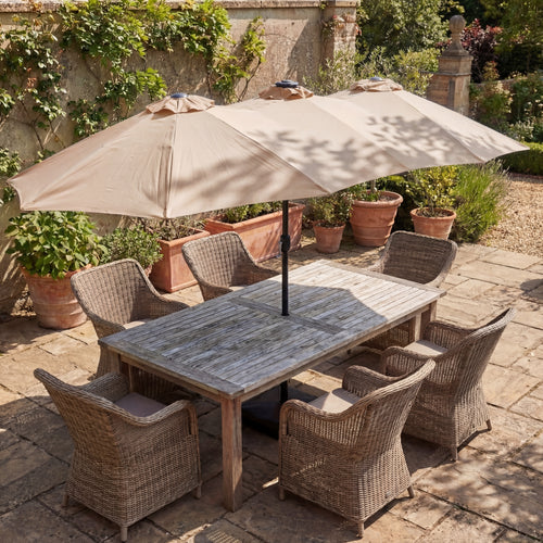 15x9 ft Double-Sided Patio Umbrella with LED Lights & Base, UPF 50+ Crank Open – Outdoor Market Umbrella